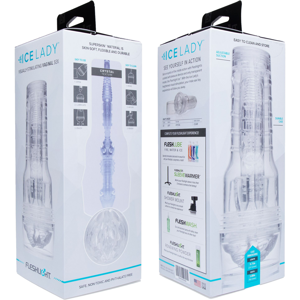 Ice Lady on valmistettu uskomattoman aidon tuntuisesta, lateksittomasta SuperSkin- materiaalista. Ice Ladysta saat kaiken nautinnon irti, kun käytät sen kanssa runsaasti vesipohjaista liukuvoidetta. Huolellisen puhdistuksen ja kuivatuksen jälkeen voit lisätä pinnalle huoltojauhetta säilyttääksesi materiaalin pehmeän ja miellyttävän pinnan.