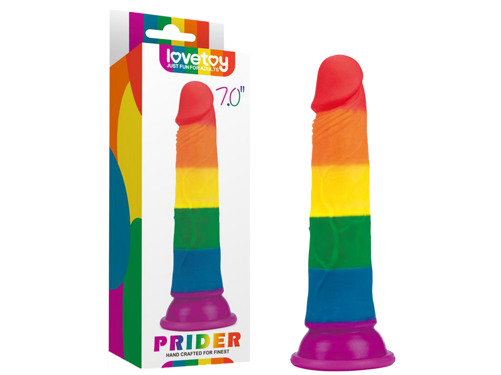 Lovetoy Dildo Prider on korkealaatuisesta, keholle turvallisesta nestemäisestä silikonista valmistettu dildo sateenkaaren väreissä. Sen pohjan vahva imukuppi mahdollistaa kiinnityksen lähes kaikille tasaisille pinnoille vapauttaen kädet kiihottamaan samanaikaisesti klitorista tai penistä - omaa tai toisen.
