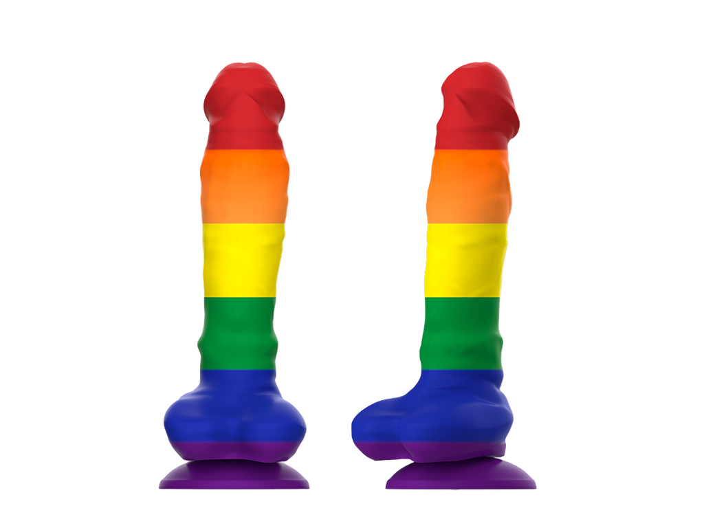 Mythology sateenkaaridildo kiveksillä ja voimakkaalla imukupilla, jonka avulla saat kiinnitettyä dildon lähes mille tahansa sileälle pinnalle. Corey Pride on valmistettu kehoasi hellivästä pehmeästä silikonista ja sen saat kiinnitettyä myös harness- valjaisiin.