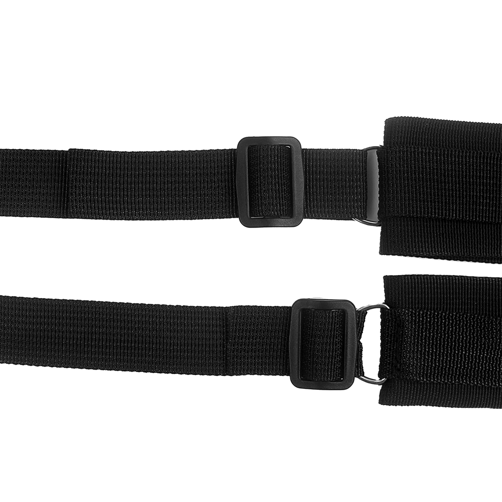 Tuo kahleet sängylle joko sängyn päädyistä, kulmista tai sivuilta ja päätä missä asennossa kumppanisi sinulle antautuu. Solkikiinnityksellä kiristettävät kahleet saat halutessasi napakasti kiinni, jotta uppiniskaisinkin kumppani pysyy tiukassa otteessa!